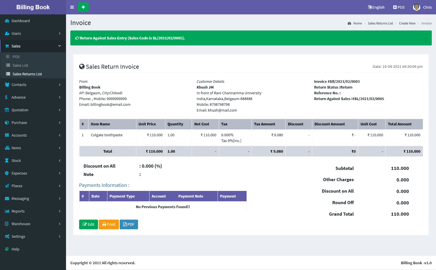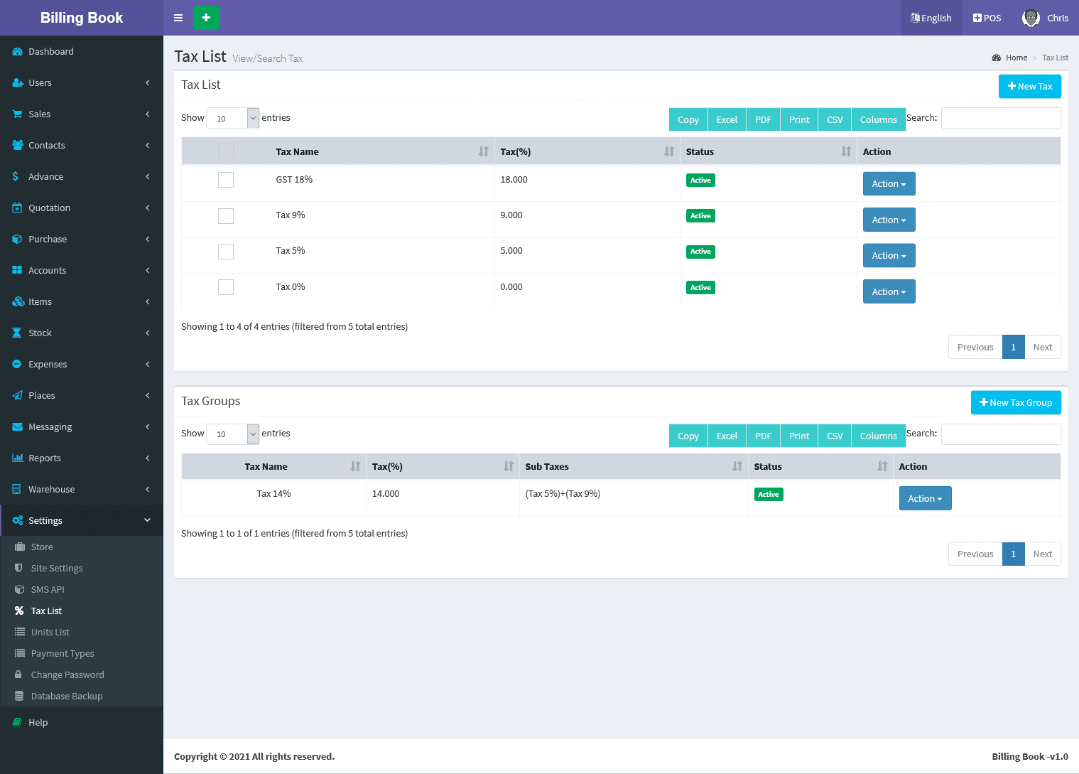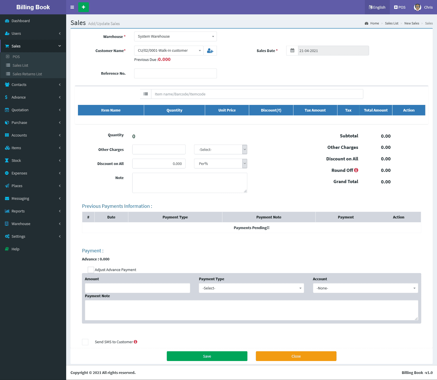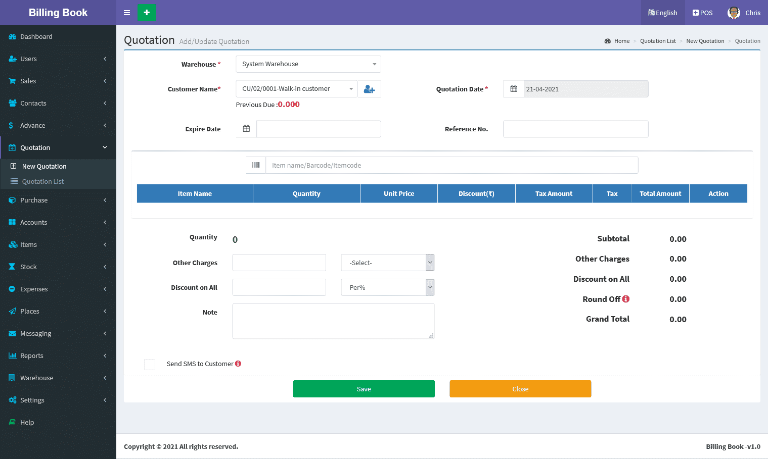 Billing Book is a PHP based web application software, where user can track and manage Items & Stock, Suppliers, Customers, Items Categories, Sales Invoice, Purchase Invoice, users and get all the reports which are require to your office with many more features. You can create any number of Warehouses and Users.